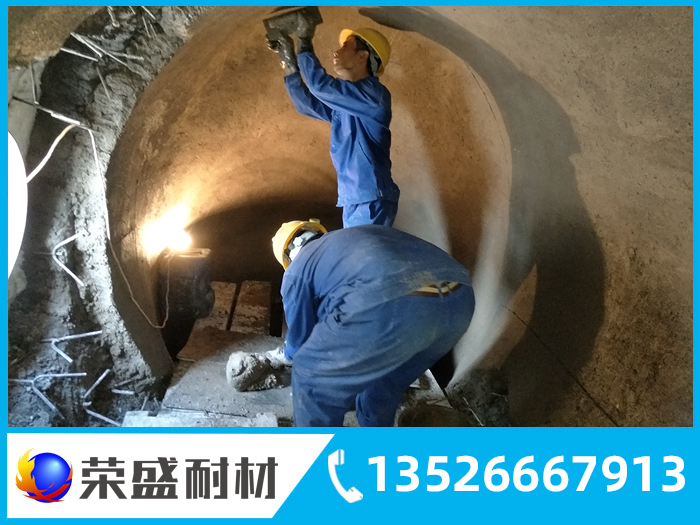 澆注料振動施工時,應將混好的泥料邊加入胎模內邊振動。振動時間的控制應以澆注體表面翮漿并無明顯氣泡冒出為宜。脫模時間應視施工現場的環境溫度而定,要保證在澆注料榮盛耐材凝并具有一定強度后脫模。