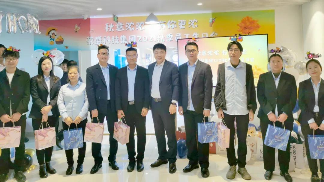 秋風(fēng)簌簌,揮毫潑墨遍將層林盡染;寒霜凝凝,靜默不語悄為初冬作序。為增加企業(yè)團隊凝聚力,豐富員工精神文化生活,11月6日下午,榮盛科技集團隆重舉辦了「秋意濃濃,有你更濃——2021秋季員工生日會」,集團董事長楚科奇、總經(jīng)理王海軍、技術(shù)副總經(jīng)理崔戰(zhàn)濤、董事長助理張阿麗、外貿(mào)總監(jiān)張運河等集團領(lǐng)導(dǎo)與來自各個部門的60余名壽星齊聚一起,共慶生日,共享快樂時刻。